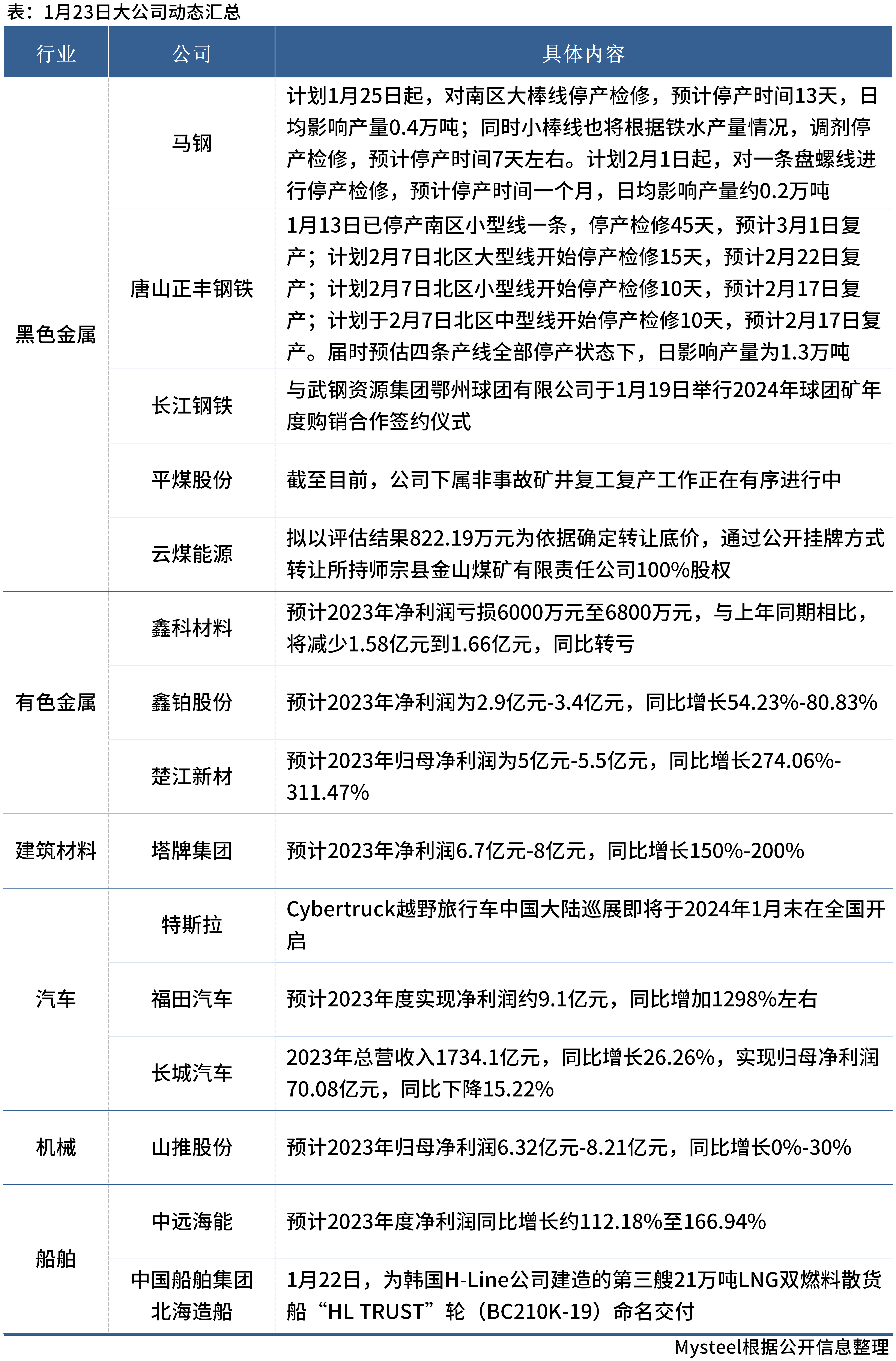 1月24日,Mysteel匯總部分大宗商品相關(guān)企業(yè)動態(tài)。