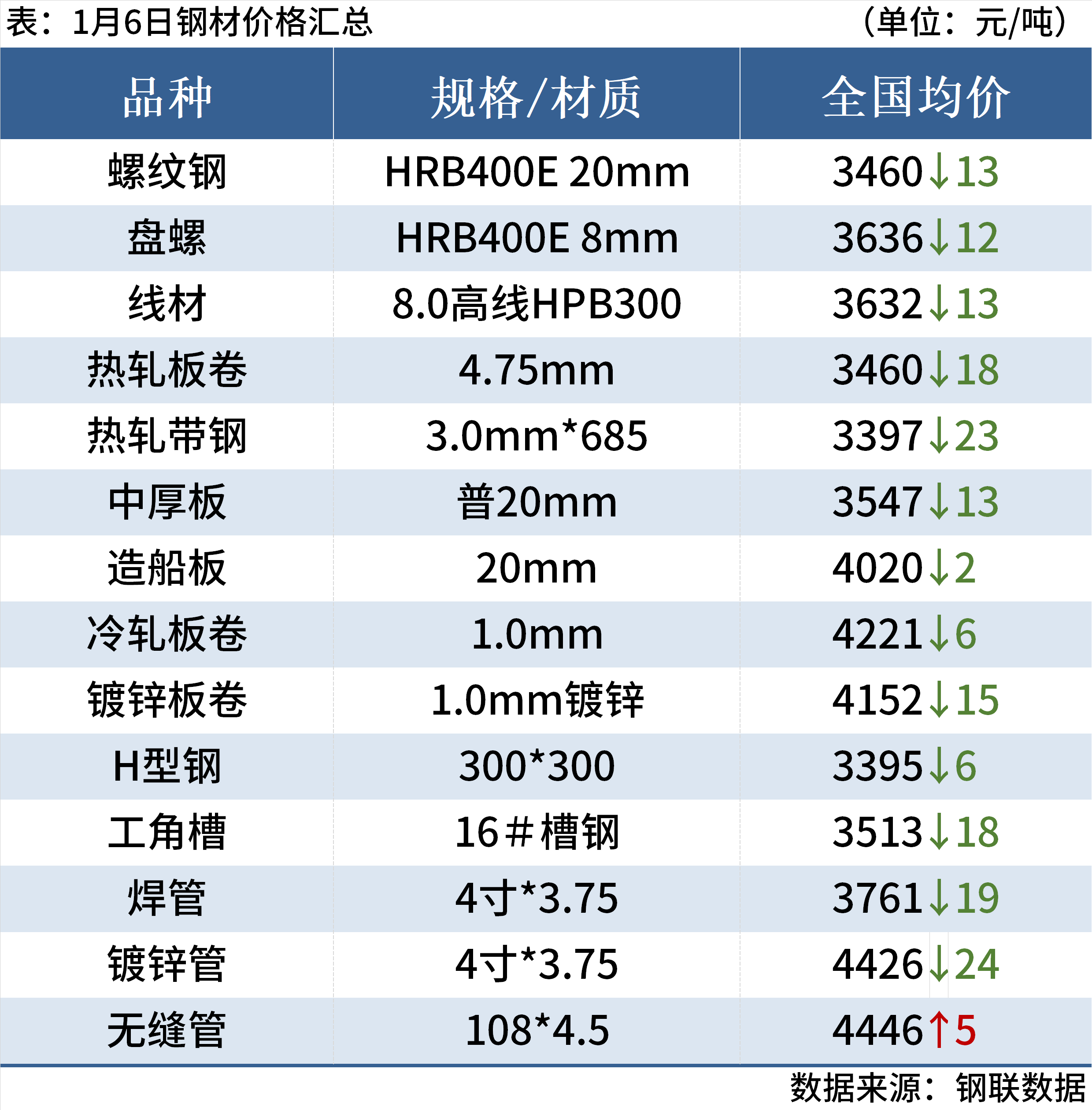 1月6日,國內(nèi)3家鋼廠下調(diào)建筑鋼材出廠價20-30元/噸。