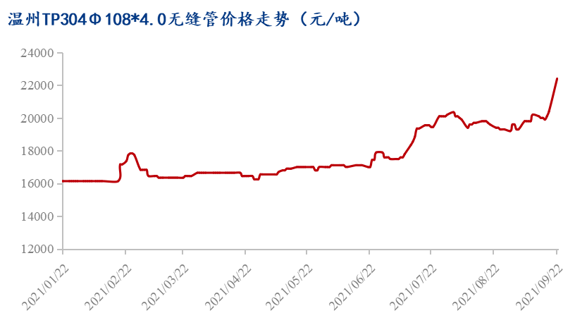 從原料端看,截止發(fā)稿前,青山及德龍圓鋼仍維持封盤狀態(tài)。而22日早間上泰開出新價,304圓鋼漲幅高達1100元/噸,價格走至18500元/噸。與此同時我們上周關(guān)于大廠此次封盤是為調(diào)漲鋪墊的推測也似乎坐實。